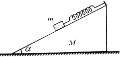 1、计算题 如图所示,质量为M、倾角为α的斜面体(斜面光滑且足够长)放在粗糙的水平地面上,底部与地面的动摩擦因数为μ,斜面顶端与劲度系数为k、自然长度为l的轻质弹簧相连,弹簧的另一端连接着质量为m的物块。压缩弹簧使其长度为