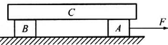 如图所示,A、B两长方体木块放在水平面上,它们的高度相等,长木板C放在它们上面.用水平力F拉木块A,使A、B、C一起沿水平面向右匀速运动,则