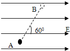 1、简答题 在匀强电场中,将一电荷量为5×10-5C的负电荷由A点移到B点,其电势能增加了0.1J,已知A、B两点间距离为2cm,两点连线与电场方向成60°角,如图所示,则: