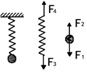 4、选择题 一根轻质弹簧竖直悬挂一小球,小球和弹簧的受力如图所示,下列说法正确的是