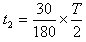最短时间对应粒子初速度与y轴负方向夹角30°,转过30° (2分)