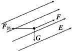 本题解析:带电油滴进入电场和磁场区域后做匀速直线运动,所以油滴处于受力平衡状态,油滴受力如右图所示.由于进入场区时速度竖直向下,所以磁场力F洛一定在水平方向上,与重力垂直,所以电场力F在水平方向的分力等于磁场力F洛,在竖直方向的分力等于重力G.