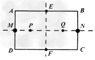 4、选择题 如图所示,在矩形ABCD的AD边和BC边的中点M和N各放一个点电荷,它们分别带等量的正、负电荷。E、F是AB边和CD边的中点,P、Q两点在MN的连线上,MP=QN。对于E、F、P、Q四点,其中电场强度相同、电势相等的两点是