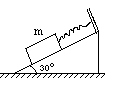 5、简答题 如图,一物体质量为m,用平行斜面的轻弹簧连接并固定在倾角为30°的光滑斜面上.此时弹簧比原来伸长了一些.斜面可以沿水平方向左右运动.那么斜面向什么方向、以多大的加速度运动时,弹簧可以恢复到原来的长度?这时物体对斜面的压力是多大?