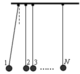 2、计算题 某兴趣小组设计了一种实验装置,用来研究碰撞问题,其模型如图所示。用完全相同的轻绳将N个大小相同、质量不等的小球并列悬挂于一水平杆、球间有微小间隔,从左到右,球的编号依次为1、2、3……N,球的质量依次递减,每球质量与其相邻左球质量之比为k(k<1)。将1号球向左拉起,然后由静止释放,使其与2号球碰撞,2号球再与3号球碰撞……所有碰撞皆为无机械能损失的正碰。(不计空气阻力,忽略绳的伸长,g取10 m/s2)