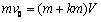 由动量守恒定律得Mv=Mv1+mv2 ①