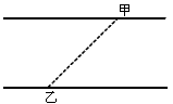 3、选择题 如图所示,甲、乙两运动员同时从水流湍急的河岸下水游泳,甲在乙的下游且游速大于乙。欲使两人尽快在河中相遇,则应选择的游泳方向是?