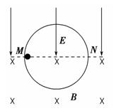 1、计算题 (18分)如图,有位于竖直平面上的半径为R的圆形光滑绝缘轨道,其上半部分处于竖直向下.场强为E的匀强电场中,下半部分处于垂直水平面向里的匀强磁场中;质量为m,带正电,电荷量为q的小球,从轨道的水平直径的M端由静止释放,若小球在某一次通过最低点时对轨道的压力为零,