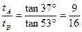 4、选择题 如图2-1所示,两个相对斜面的倾角分别为37°和53°,在斜面顶点把两个小球以同样大小的初速度分别向左、向右水平抛出,小球都落在斜面上。若不计空气阻力,则A、B两个小球的运动时间之比为(?)