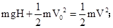 本题考查的是机械能守恒问题。斜抛铁球,铁球只受重力作用,所以机械能守恒。根据机械能守恒列方程,求解。