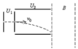 3、计算题 如图所示,一个质量为m、电荷量q的带正电粒子(重力忽略不计),从静止开始经电压U1加速后,沿水平方向进入水平放置的两平行金属板间,已知金属板长为L,两板间距
