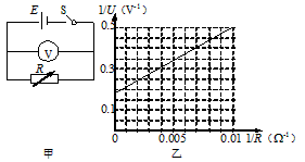 2、实验题 现有一种特殊的电池,它的电动势E恒定,内阻r较大。为了测定这个电池的电动势和内电阻,某同学利用如图甲所示的电路进行实验,图中电压表的内阻很大,对电路的影响可不考虑,R为电阻箱,改变电阻箱的阻值,记录电压表示数,得到如图乙所示图线。