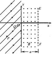 )时发出的粒子恰好垂直磁场边界EF射出;将粒子源沿直线PO移动到Q点时,所发出的粒子恰好不能从EF射出。不计粒子的重力及粒子间相互作用力。求: