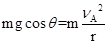 在A点,把物体的运动看成圆周运动的一部分,物体的重力分力作为向心力,