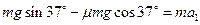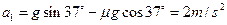 参考答案:(1)根据牛顿第二定律得,a1=mgsin37°-μmgcos37°m=gsin37°-μgcos37°=5.2m/s2.