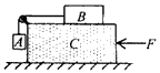 2、选择题 如图所示,长方体物块C置于水平地面上,物块A、B用不可伸长的轻质细绳通过滑轮连接(不计滑轮与绳之间的摩擦),A物块与C物块光滑接触,整个系统中的A、B、C三物块在水平恒定推力F作用下从静止开始以相同的加速度一起向左运动,下列说法正确的是
