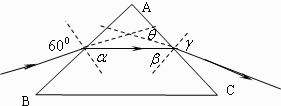 根据折射定律得:sin60°sinα=n,sinγsinβ=n,所以α=β=45°