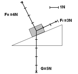 3、作图题 一个重为5N的物体静止在倾斜角为30°的粗糙斜面上,该物体受到沿斜面向上的3N的摩擦力和4N的支持力画出这三个力的图示。