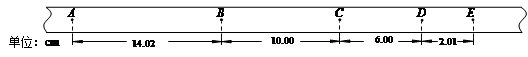 5、实验题 在《探究小车速度随时间变化的规律》的实验中,如图所示为一次记录小车运动情况的纸带.图中A、B、C、D、E为相邻的计数点,相邻计数点间的时间间隔T=0.1s.