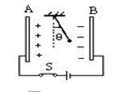 3、选择题 如图所示,平行板电容器的两极板A、B接于电池两极,一带正电的小球悬挂在电容器内部,闭合S,电容器充电,这时悬线偏离竖直方向的夹角为θ,则下列说法正确的是