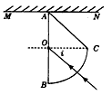 1、计算题 如图所示,为某种透明介质的截面图,△ACC为等腰直角三角形,BC为半径R=10cm的四分之一圆弧,AB与水平屏幕MN垂直并接触于A点。由红光和紫光两种单色光组成的复色光射向圆心O,在AB分界面上的入射角i=45°,结果在水平屏幕MN上出现两个亮斑,已知该介质对红光和紫光的折射率分别为