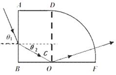 (2)设光线在AB面的折射角为θ2,折射光线与OD的夹角为C,则