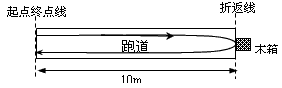 2、计算题 “10米折返跑”的成绩反应了人体的灵敏素质。测定时,在平直跑道上,受试者以站立式起跑姿势站在起点终点线前,当听到“跑”的口令后,全力跑向正前方10米处的折返线,测试员同时开始计时。受试者到达折返线处时,用手触摸折返线处的物体(如木箱),再转身跑向起点终点线,当胸部到达起点终点线的垂直面时,测试员停表,所用时间即为“10米折返跑”的成绩。设受试者起跑的加速度为4m/s2,运动过程中的最大速度为4m/s,快到达折返线处时需减速到零,减速的加速度为8m/s2,返回时达到最大速度后不需减速,保持最大速度冲线。求该受试者“10米折返跑”的成绩为多少秒?