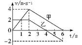 5、选择题 来源:91考试网 91ExaM.org 甲、乙两个物体在同一条直线上运动, 它们的速度-时间图象如图所示,则(? )