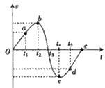 5、选择题 一个小孩在蹦床上做游戏,从高处落到蹦床上后又被弹回到原高度。在他从高处开始下落到弹回至原高度的整个过程中,运动的速度随时间变化的图像如图所示。图中Oa段和de段为直线,则根据此图可知