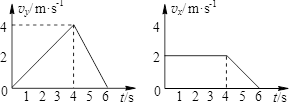 本题解析:速度-时间图象与时间轴围成的面积表示物体运动的位移,开始4s内物体沿x方向位移为x=2×4m=8m,沿y方向位移