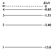 1、简答题  氢原子处于基态时,原子的能级为E1=-13.6eV,普朗克常量h=6.63×10ˉ34J?s,氢原子在n=4的激发态时,问: