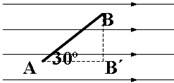 3、简答题 如图所示,在场强为E=4.0×103N/C的匀强磁场中有相距为5.0cm的A、B两点,两点的连线与场强方向成30°角,求:A、B两点间的电势差.将电量为4×10-6C的点电荷从A点移到B点,电场力做多少功?