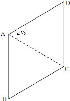 5、简答题 由二个边长为L的正三角形组成的菱形区域内存在匀强电场,电场方向平行于AB、由B指向A.现有一电子垂直于AB边从A点射入电场,射入的速度为v0,电子恰从C点射出.已知电子质量为m,电荷量为-q.