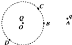 2、选择题 如图所示,在O点置一点电荷Q,以O为圆心作一圆.现将一试探电荷q从A分别移到圆上的B、C、D三点,则电场力做功( ? )