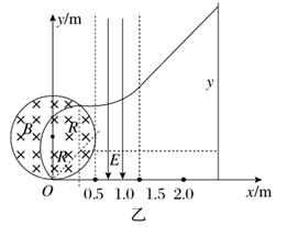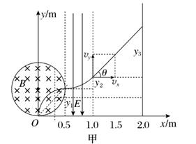 (2)粒子射出磁场时,速度与x轴平行,粒子将垂直电场线射入电场,如图乙所示?