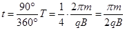 ,故A正确.粒子在磁场中轨迹对应的圆心角为90°,则在磁场中运动的时间为