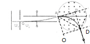 1、选择题 如图所示,一电荷量为q,质量为m的带正电粒子,经过水平方向的加速电场U,沿水平方向进入竖直方向的偏转电场U2,已知粒子从偏转电场下极板最左端的G点进入,恰从上极板最右端A点离开偏转电场,立即垂直射入一圆形区域的均强磁场内,AC是圆形磁场区域的一条沿水平方向的直径。粒子速度方向与AC成