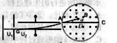 1、选择题 如图所示,一电荷量为q,质量为m的带正电粒子,经过水平方向的加速电场U,沿水平方向进入竖直方向的偏转电场U2,已知粒子从偏转电场下极板最左端的G点进入,恰从上极板最右端A点离开偏转电场,立即垂直射入一圆形区域的均强磁场内,AC是圆形磁场区域的一条沿水平方向的直径。粒子速度方向与AC成