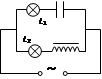 3、选择题 两只相同的白炽灯接到如图所示的电路中,当接电压最大值U1,频率f1的正弦交流电时,两灯亮度相同。换一个新正弦交流电源后L1的亮度高于L2,则新电源的电压最大值U2,频率f2可能是