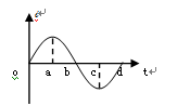 5、选择题 如图所示为LC振荡电路中振荡电流随时间变化的图像,o、a、b、c、d各时刻之间时间间隔相等,以下结论正确的是: