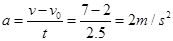 本题解析:(1)根据某段时间内的平均速度等于中间时刻的瞬时速度知,2.5s末的速度为7m/s,