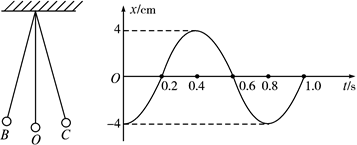5、计算题  如图所示是一个单摆振动的情形,O是它的平衡位置,B、C是摆球所能到达的最远位置.设摆球向右方向运动为正方向.图1-3-16所示是这个单摆的振动图像.根据图像回答:(取π2=10)