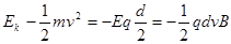 1、填空题 如图所示,质量为m,带电量为-q的粒子,从两平行电极板正中央垂直电场线和磁感线以速度v飞入.已知两板间距为d,磁感强度为B,这时粒子恰能直线穿过电场和磁场区域(重力不计).今将磁感强度增大到某值,则粒子将落到极板上.当粒子落到极板上时的动能为______.?