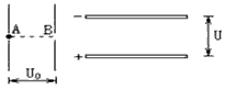 5、计算题 如图所示为两组平行板金属板,一组竖直放置,一组水平放置,今有一质量为m的电量为e的电子静止在竖直放置的平行金属板的A点,经电压U0加速后通过B点进入两板间距为d、电压为U的水平放置的平行金属板间,若电子从两块水平平行板的正中间射入,且最后电子刚好能从右侧的两块平行金属板穿出,A、B分别为两块竖直板的中点,求: