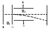 4、选择题 如图所示,质子由初速为零,经电压为U1电场加速后,又经一电压为U2的匀强电场偏转,最后打在荧光屏上,那么