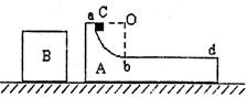 1、简答题 如图所示,在光滑的水平地面上,有A、B、C三个物体处于静止状态,三者质量均为m,物体A的ab部分为半径为R的光滑1/4圆弧,bd部分水平且粗糙,现让小物体C自a点静止释放,当小物体C到达b点时,物体A将与物体B发生碰撞,且与B粘在一起(设碰撞时间极短),试求