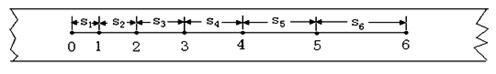 1、实验题 在研究匀变速直线运动的实验中,得到的一条纸带,从O点开始每5个点取一个计数点(打点计时器的电源频率是50Hz),依照打点的先后依次编为1、2、3、4、5、6,量得s1=1.22cm, s2=2.00cm,s3=2.78cm,s4=3.56cm,s5=4.34cm,s6=5.12cm。