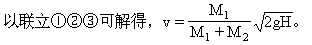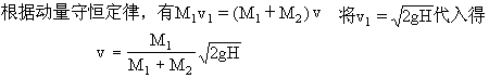 本题解析:【错解分析】错解:M1自由下落H距离时,速度v1=。在M1和M2组成的系统中,它们相互作用前后的动量守恒。当绳子刚被拉紧时,设M1,M2的共同速度为v,