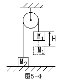 2、简答题 一绳跨过定滑轮,两端分别栓有质量为M1,M2的物块(M2>M1如图5-4),M2开始是静止于地面上,当M1自由下落H距离后,绳子才被拉紧,求绳子刚被拉紧时两物块的速度。