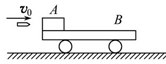 1、计算题 )长度为L=5m,质量为mB="2" kg的平板车B上表面水平,开始时静止在光滑水平面上,在平板车左端静止着一块质量为mA="2" kg的物体A,一颗质量为m0="0.01" kg 的子弹以v0="600" m/s的水平初速度瞬间射穿A后,速度变为v="100" m/s。已知A、B之间的动摩擦因数不为零,A的大小可忽略,且最终A恰好没有掉离B.求: